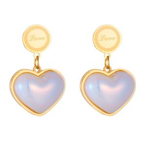 Earrings Gold w/ white Heart